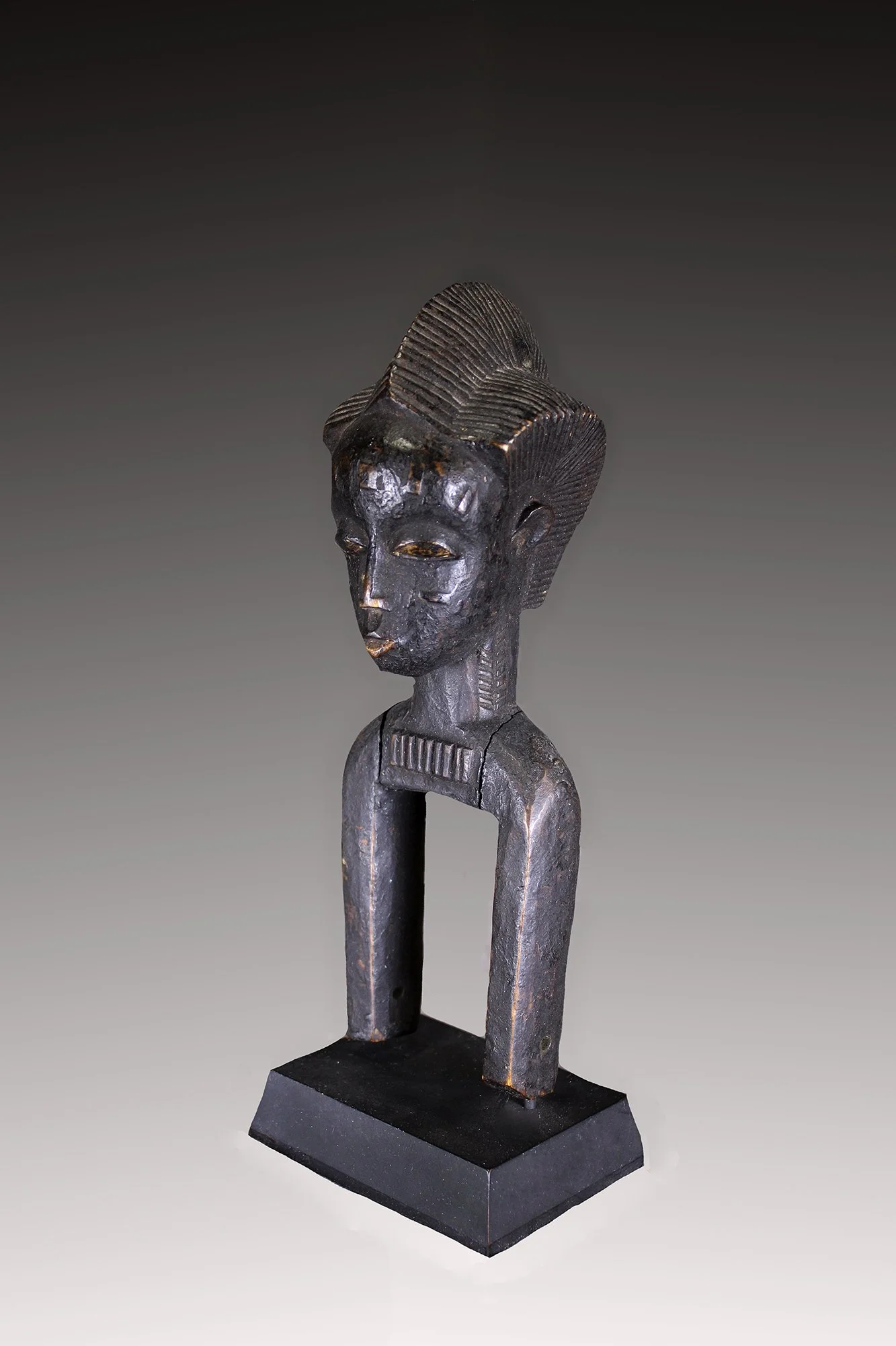 The Baule carved heddle pulleys that were both utilitarian and aesthetic objects. Commissioned by a weaver, these carved pulleys were suspended over the loom to raise and lower the heddle to control the weaving shuttle.