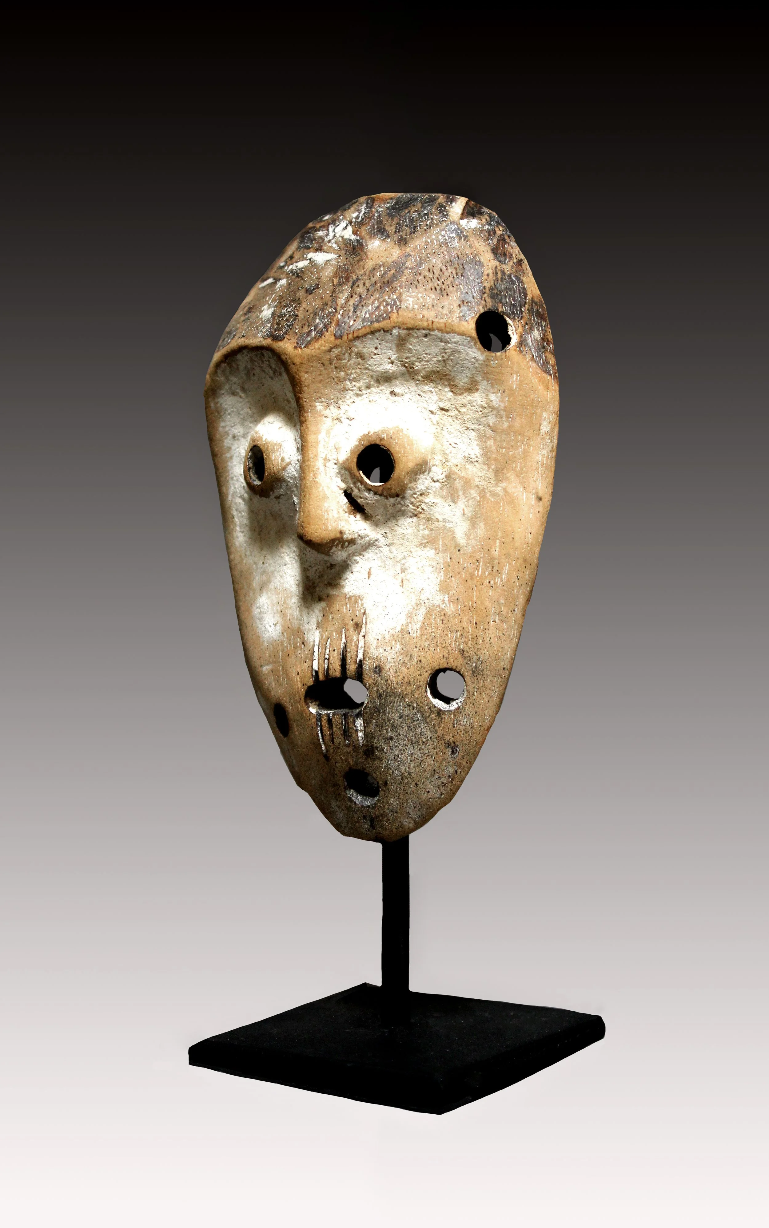 Miniature Lega masks known as Lukwakongo were used to teach morality to children. These masks were used during initiations into the Bwami society and were either hung on fences, piled in stacks with other masks or attached to the face or different parts of a dancer’s body.