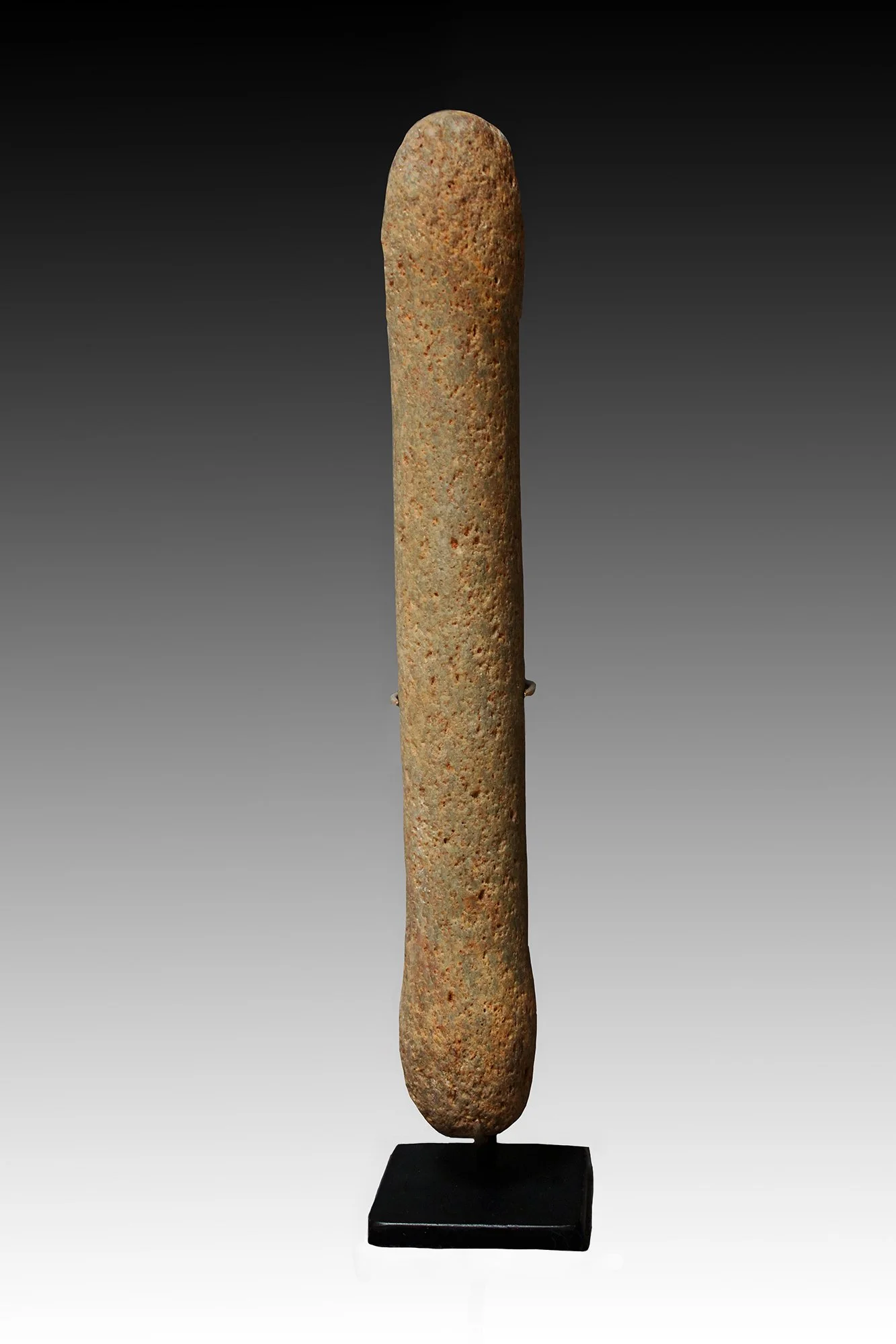Archeological excavations discovered the ancient city of Djenne dating to the 3rd century B.C. This Djenne stone pestle was used to grind grain and organic materials used in a rocking motion on a flat surface.